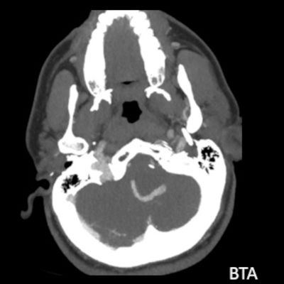 - BT anjiyografi (BTA) ile anevrizma içindeki patent, serpantin damar kanalı ve anevrizmanın besleyici damarları daha net bir şekilde görüntülenebilir.