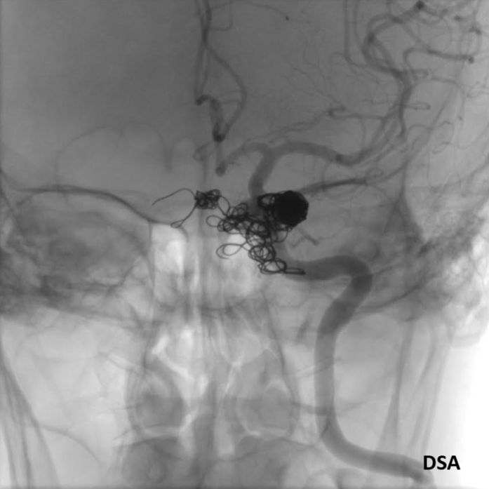- Olgumuzun DSA incelemelerinde sol ICA ve ECA’dan kavernöz sinüse fistülöz bağlantı olduğu izlenmiş ve coil embolizasyon işlemi uygulanarak tedavi edilmiştir.