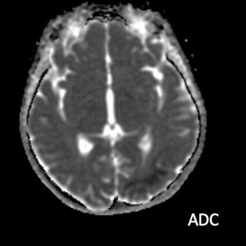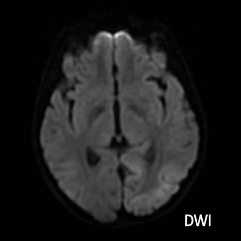 - MRG’de akut fazda T2/FLAIR hiperintensiteyle birlikte giral şişme ile karakterize enfarkt-benzeri lezyonlar ve subkortikal beyaz cevher tutulumu görülür. DWI’da artmış sinyal dikkat çekmekle birlikte ADC değerlerinin normal ya da hafif artmış olması, baskın sürecin vazojenik ödem olduğunu gösterir.