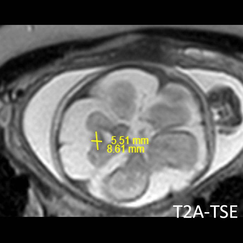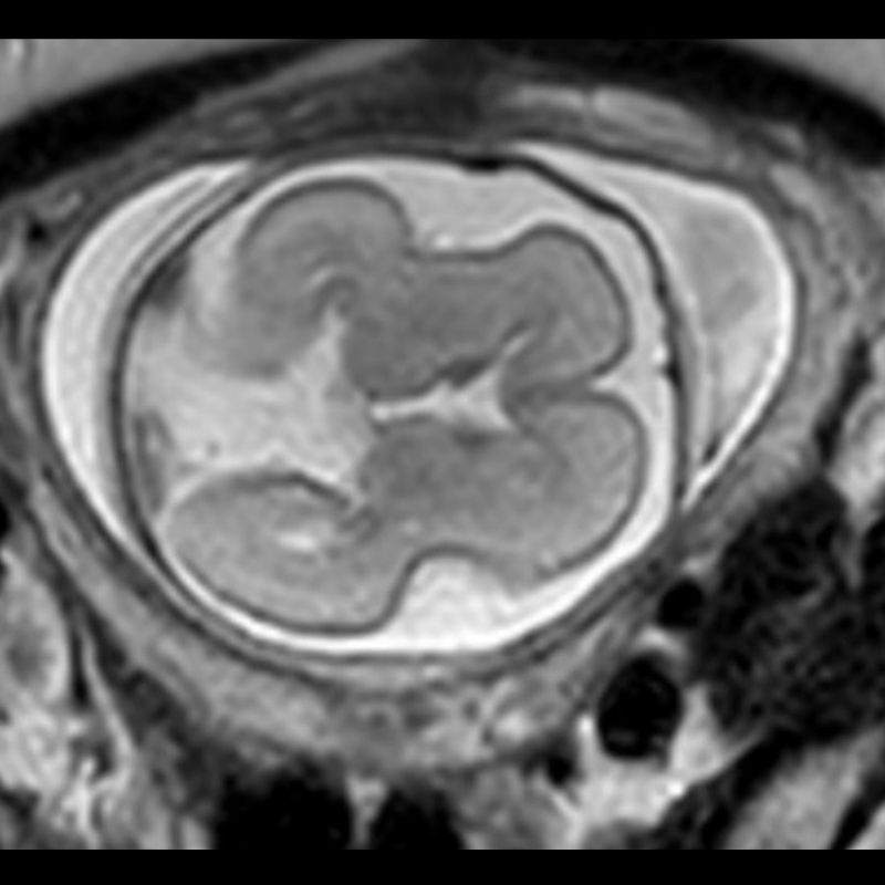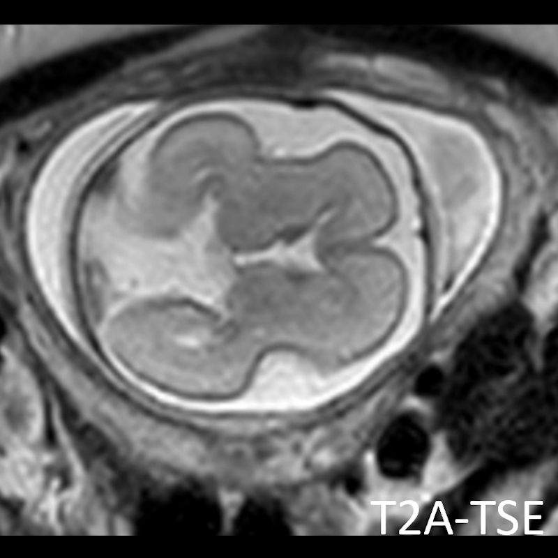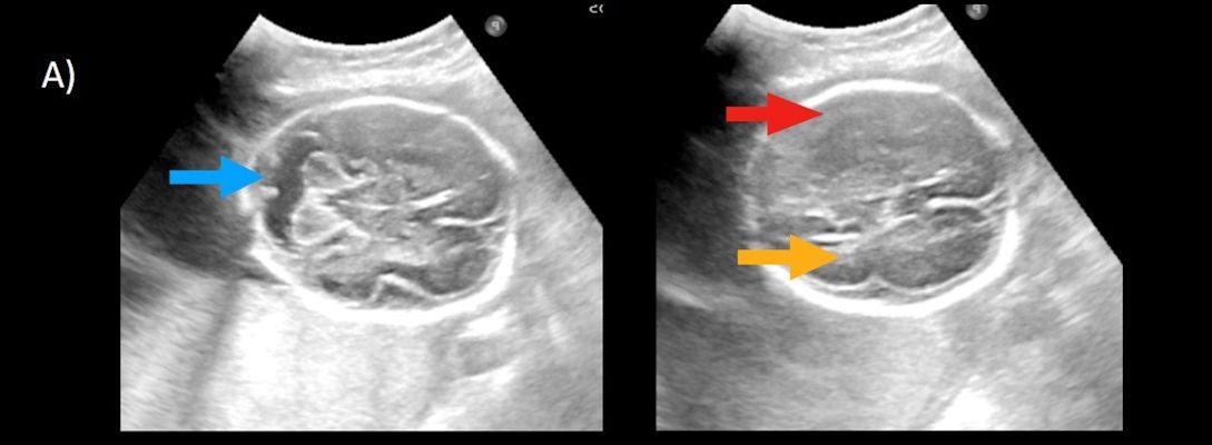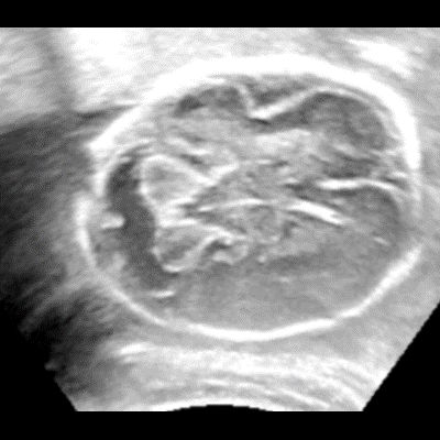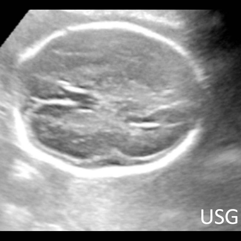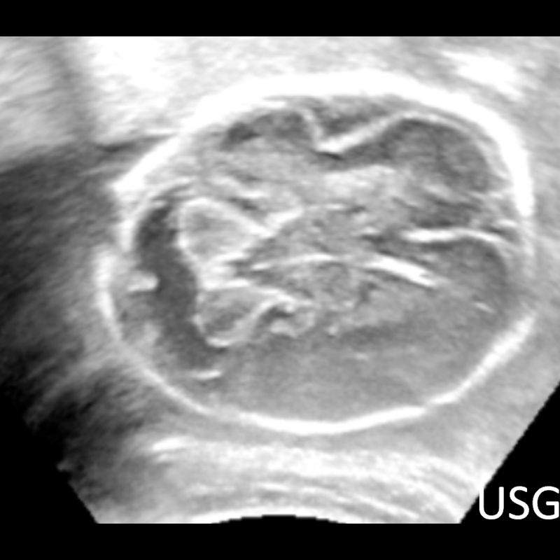 - Operkulizasyon yokluğuna bağlı sylvian fissürün açık görünümü ve vertikal yerleşimi karakteristik bir bulgudur. Serebral yapılar; sığ ve vertikal yerleşimli sylvian fissür sebebiyle “8” görünümündedir. Ancak bu görünümün 26. gestasyonel haftaya kadar normal olduğu akılda tutulmalıdır.