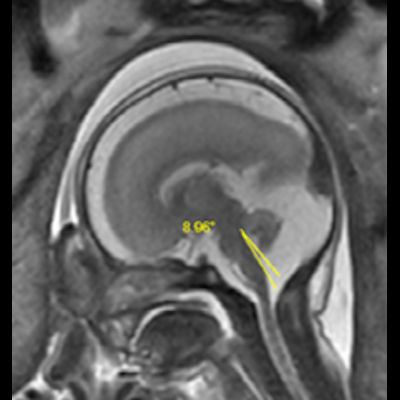 - Dandy Walker Malformasyonu(DWM); posterior fossa ve serebellar vermiş gelişim bozukluğudur. Radyolojik incelemelerde vermisin hipoplazi/aplazisi, tentoryum serebellide superiora yer değiştirme , tegmentovermian açının 45 derecenin üstünde olması ile tanı konur. İntrauterin dönemde bu açı sınırı fetüs gestasyonel haftasına göre değişkenlik göstermektedir.